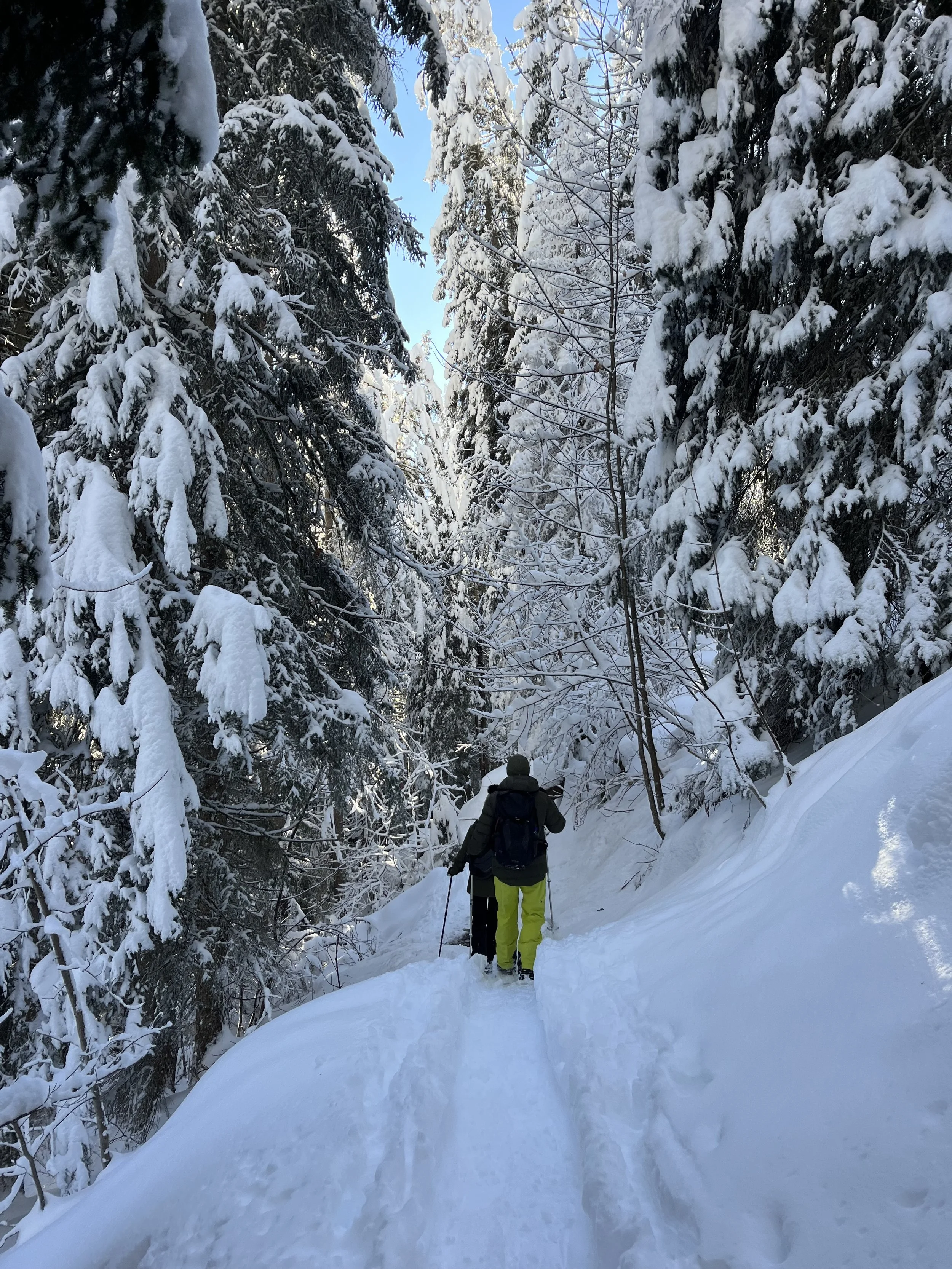 Trade the crowds for quiet winter trails and join us for a snowshoe adventure in the Swiss Alps. Surrounded by dramatic peaks and silent forests, this winter experience is perfect for anyone who loves nature, fresh mountain air, and simple alpine moments. Our guided snowshoe tours follow beautiful panoramic trails above Mürren or in the Grindelwald valley, depending on snow conditions and weather. Whether it’s tracing a ridge with views to the Eiger, Mönch and Jungfrau, or wandering through untouched powder above the Lauterbrunnen Valley, we choose the best route each day for your comfort and safety.