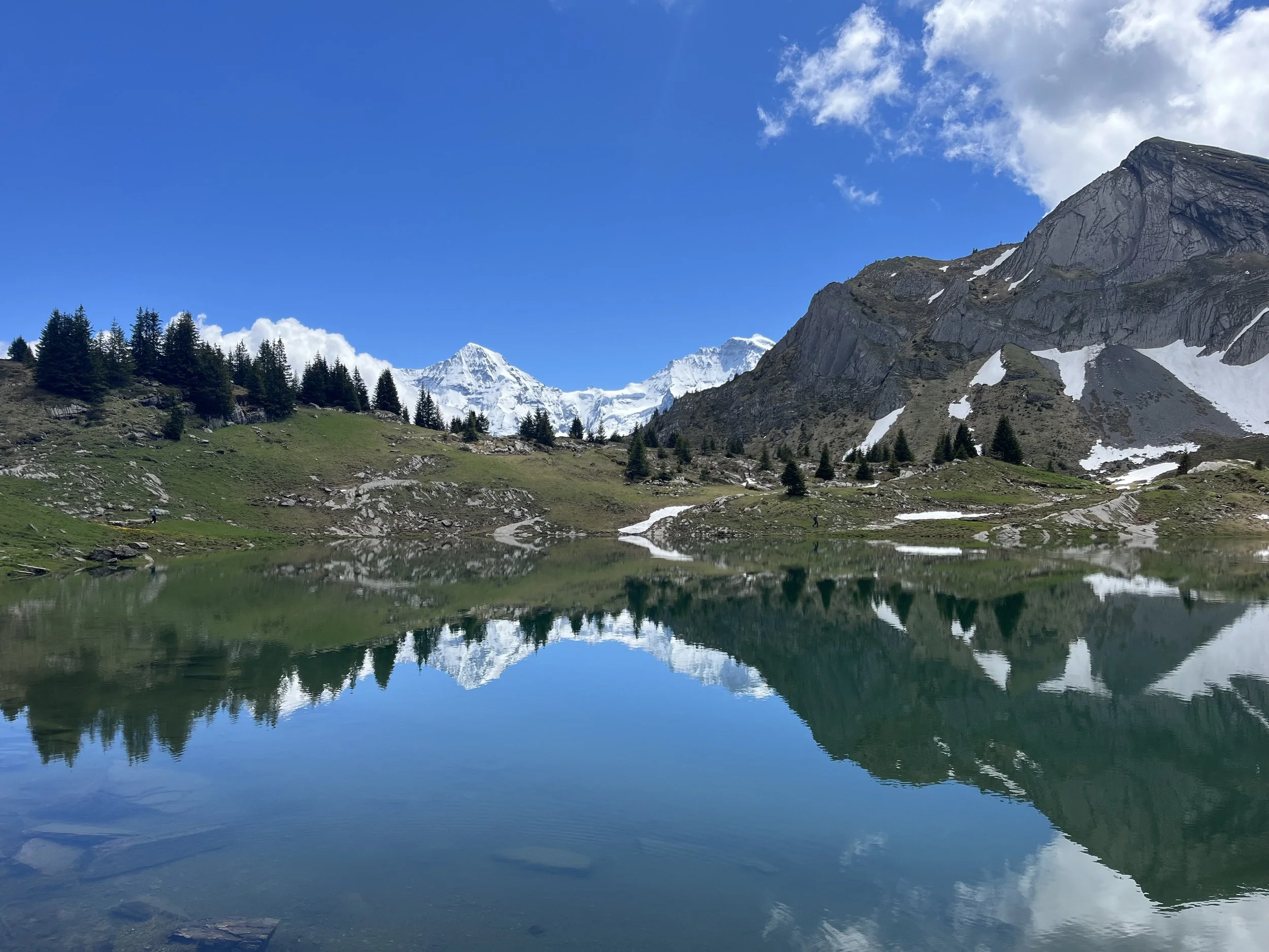 On our first day we’ll head to one of our favorite hidden corners of the Lauterbrunnen Valley. The trail climbs through forest and open alpine terrain until we reach Oberhornsee, a quiet alpine lake surrounded by the most beautiful peaks and glaciers.